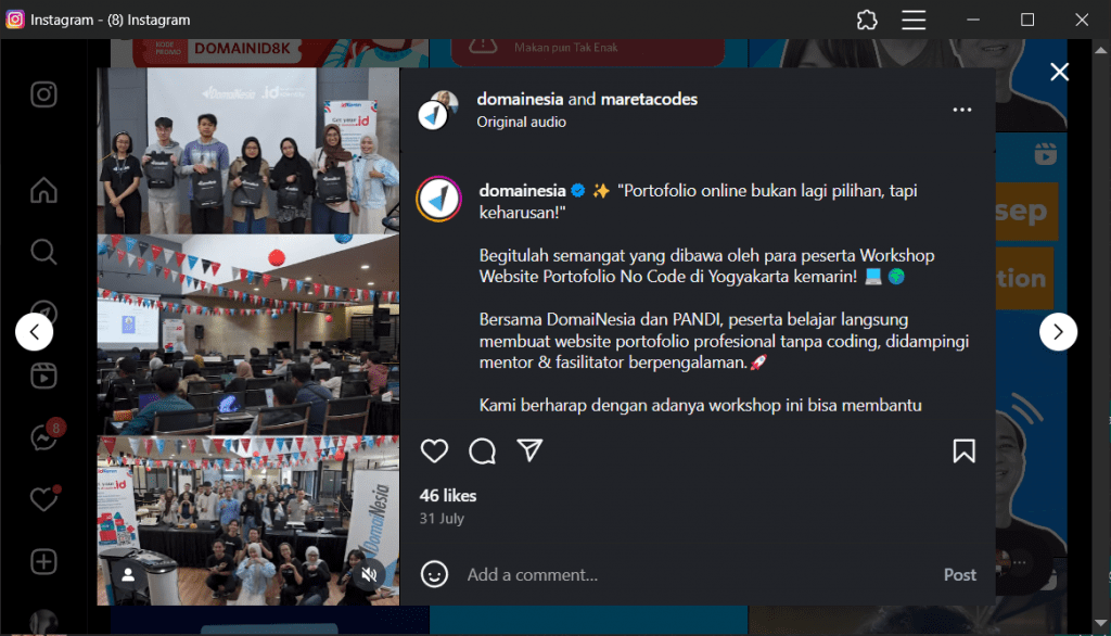 DomaiNesia menyelenggarakan berbagai acara seperti Kelas Tanya DomaiNesia, workshop, lomba WordPress, dan seminar, yang membantu kita mengelola hosting dengan lebih baik. Acara ini tidak hanya mendidik tapi juga membangun komunitas, memungkinkan kita berjejaring dan belajar langsung dari ahli.
